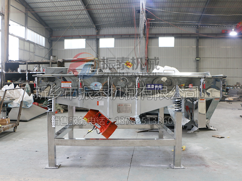 電石渣直線振動(dòng)篩是振動(dòng)篩的一種,依靠振動(dòng)電機(jī)作為振動(dòng)源,使篩網(wǎng)上的所篩物料在被拋起的同時(shí)向前做直線運(yùn)動(dòng)。直線振動(dòng)篩的篩分過程概括來說是物料通過進(jìn)料口均勻的進(jìn)入直線振動(dòng)篩,通過各不同層次篩網(wǎng)篩分多種規(guī)格的篩上物、篩下物,又從不同的出料口排出,達(dá)到篩分目的。