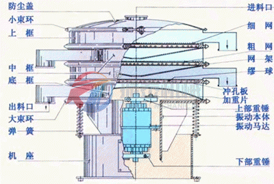 振動篩中框:帶回料盤的中框起到把第一層篩網透過的物料從新收集,再次投放到第二層篩網上,防止應該過網的物料掉到第二出料口沒有經過篩分就直接排出。