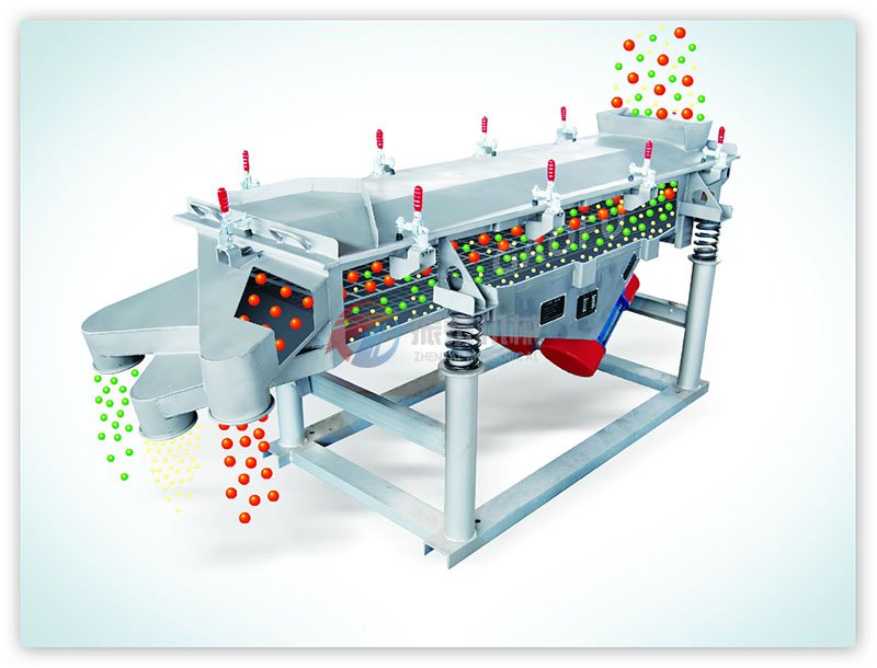直線振動篩是振動篩的一種,依靠振動電機作為振動源,使篩網(wǎng)上的所篩物料在被拋起的同時向前做直線運動。常見的直線篩包括DZSF系列直線振動篩、ZSG系列高效重型篩、ZSK礦用直線篩等。直線篩的篩分過程概括來說是物料通過進料口均勻的進入直線篩,通過各不同層次篩網(wǎng)篩分多種規(guī)格的篩上物、篩下物,又從不同的出料口排出,達到篩分目的。直線振動篩具有產(chǎn)量高、能耗低、結(jié)構(gòu)簡單、易維修、全封閉結(jié)構(gòu)、無粉塵溢散、自動排料等特點,更適合流水線作業(yè)。